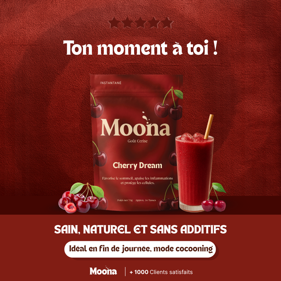 Riche en mélatonine naturelle, antioxydants et vitamine C, la cerise favorise l’endormissement, protège tes cellules et contribue à une récupération optimale nuit après nuit.
